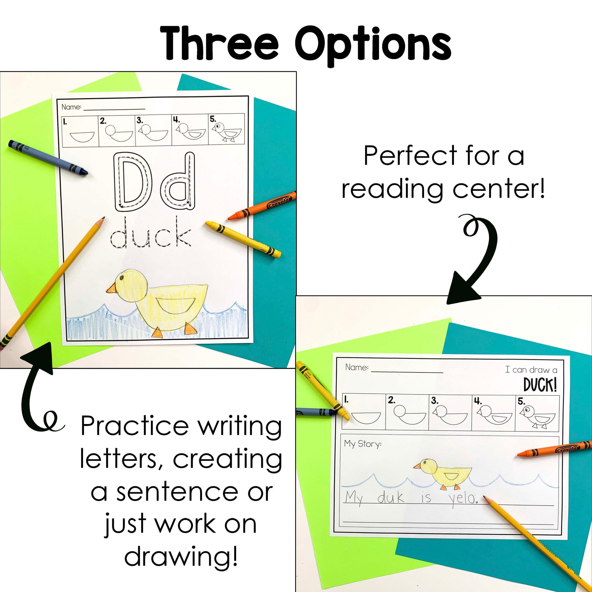 - Option One: Use as a reading/craft center. Students will draw the picture and practice tracing and drawing the letter