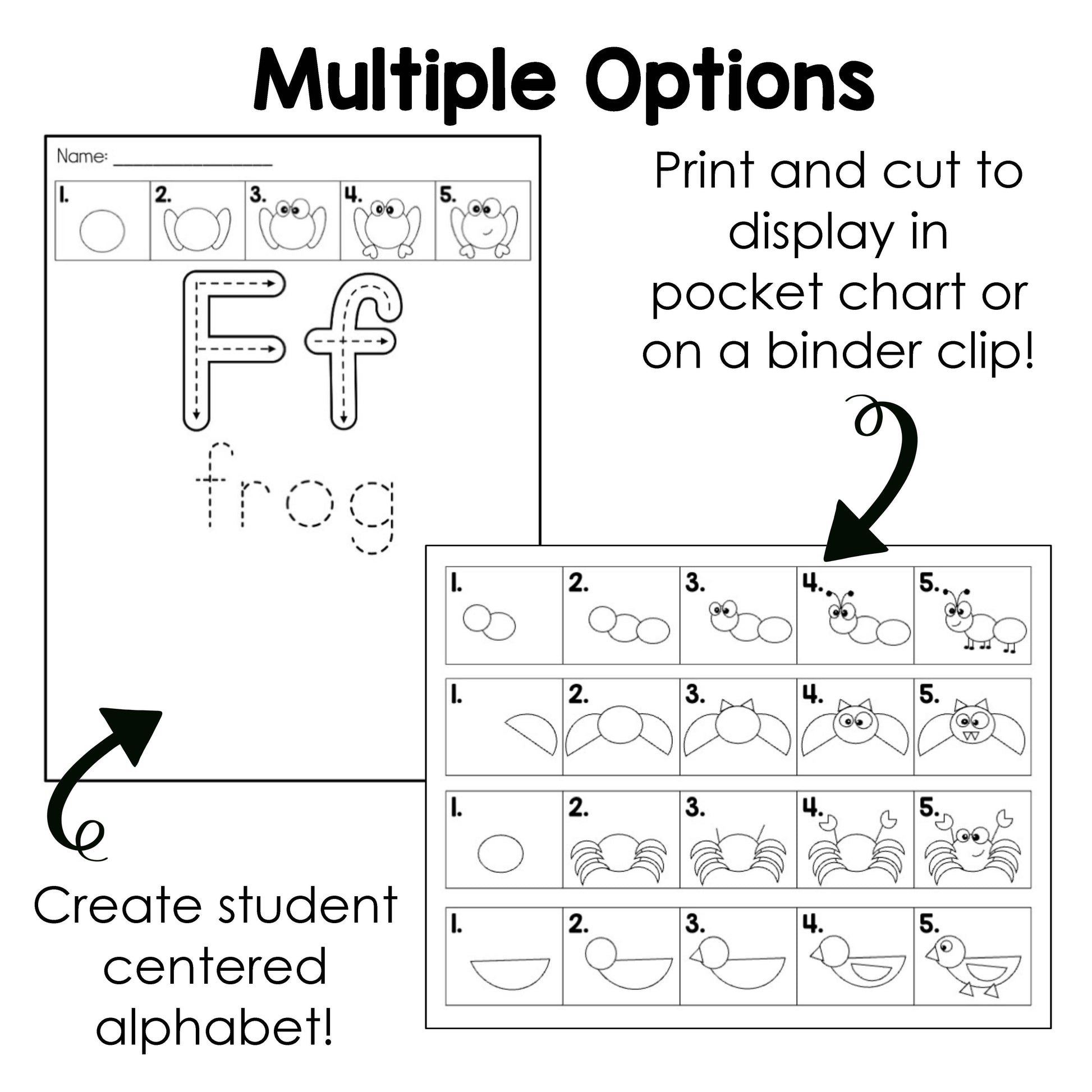 - Option Three: Create student centered alphabet charts to display in classroom or take home each day