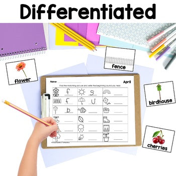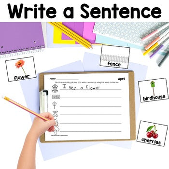- 4 differentiated worksheets: Write the word, trace the word, write the beginning sound, and write a sentence