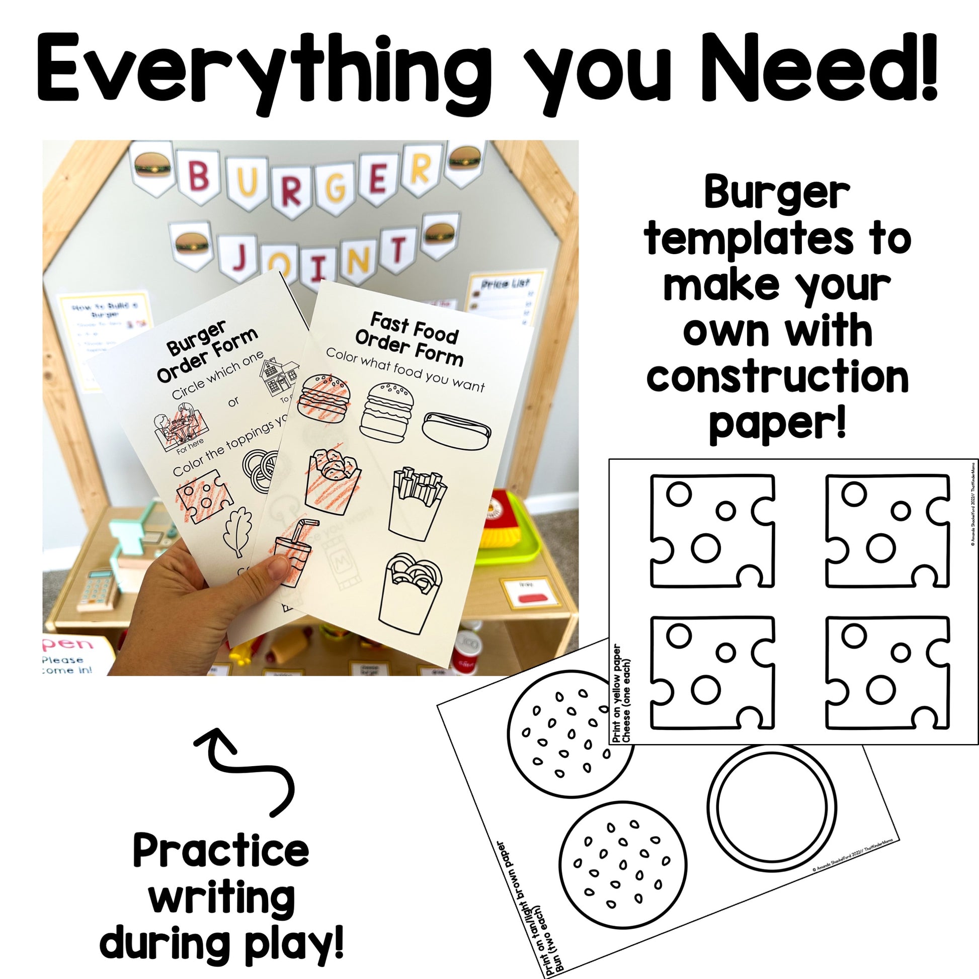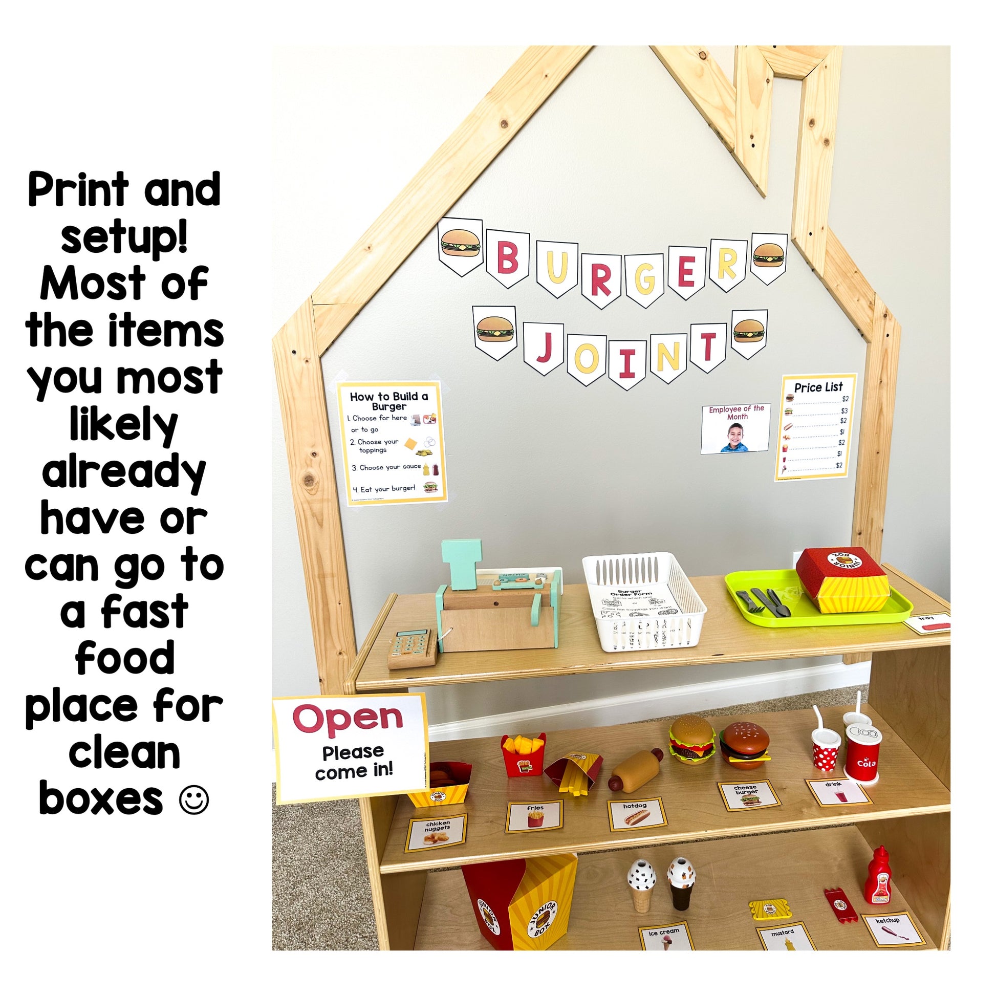 This is a Burger Joint Dramatic Play setup. Expose your students to real pictures and make real world connections through this dramatic play at a fast food resturant. Your students will love pretending to ordering food all month long!
