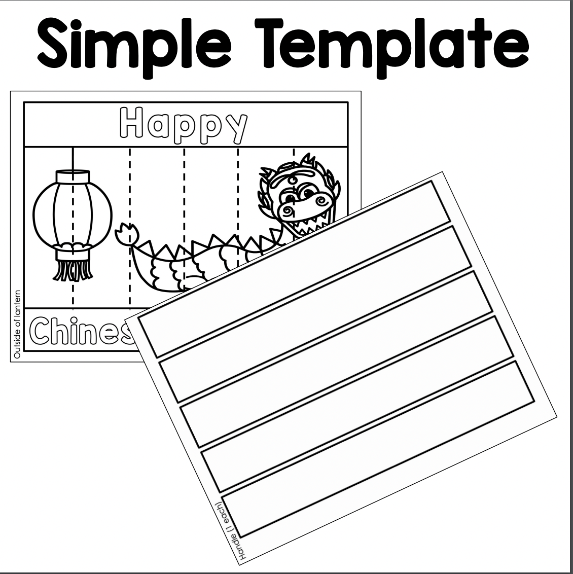 - Chinese Lantern craft: Print on templates on specific colored paper. Fold and cut on dashed lines. Glue the sides together into a cylinder and add the handle to the top. Display on bulletin board