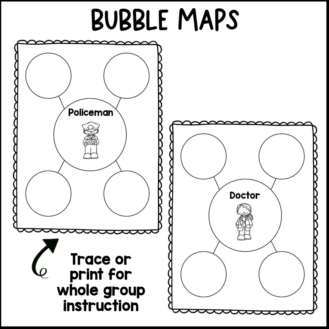 These are community helpers writing activities. Students will learn about different members in the community by creating bubble maps and write their own nonfiction book about each community helper. At the end of the unit, they will create a craftivity of which community helper they would like to be when they grow up!