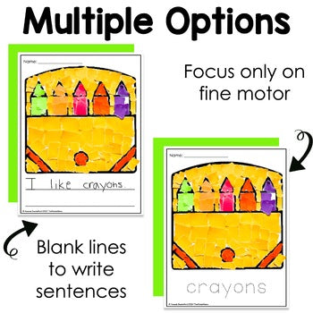 This is a Crayon Tear Art fine motor craft. Students will work on the muscles in their hand by tearing paper while creating this fun craft. Perfect addition to your Back to School Unit or at the beginning of the year!