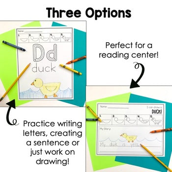 - Option One: Use as a reading/craft center. Students will draw the picture and practice tracing and drawing the letter