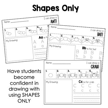 directed drawings | i can draw with shapes | I can draw and write | kindergarten reading centers | reading centers | craft centers | illustration unit | directed drawings with shapes | alphabet animals | beginning sounds | handwriting practice
