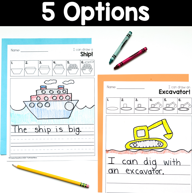 These are simple transportation directed drawings with shapes ONLY. Perfect for kindergarten or first grade students to continue gaining confidence in their drawing abilities while also practicing fine motor sentence writing. Add these directed drawings to your reading or craft centers to give your students hand on experiences.