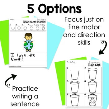 These are Earth Day directed drawings. Perfect for kindergarten students to continue gaining confidence in their drawing abilities while also practicing fine motor skills, following directions, sentence writing or building vocabulary. Add these directed drawings to your reading or craft centers to give your students hand on experiences.