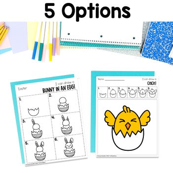 These are Easter directed drawings. Perfect for kindergarten students to continue gaining confidence in their drawing abilities while also practicing fine motor skills, following directions, sentence writing or building vocabulary. Add these directed drawings to your reading or craft centers to give your students hand on experiences.