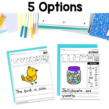 - Option Two: Students draw the directed drawing AND write a sentence (blank and handwriting lines available)