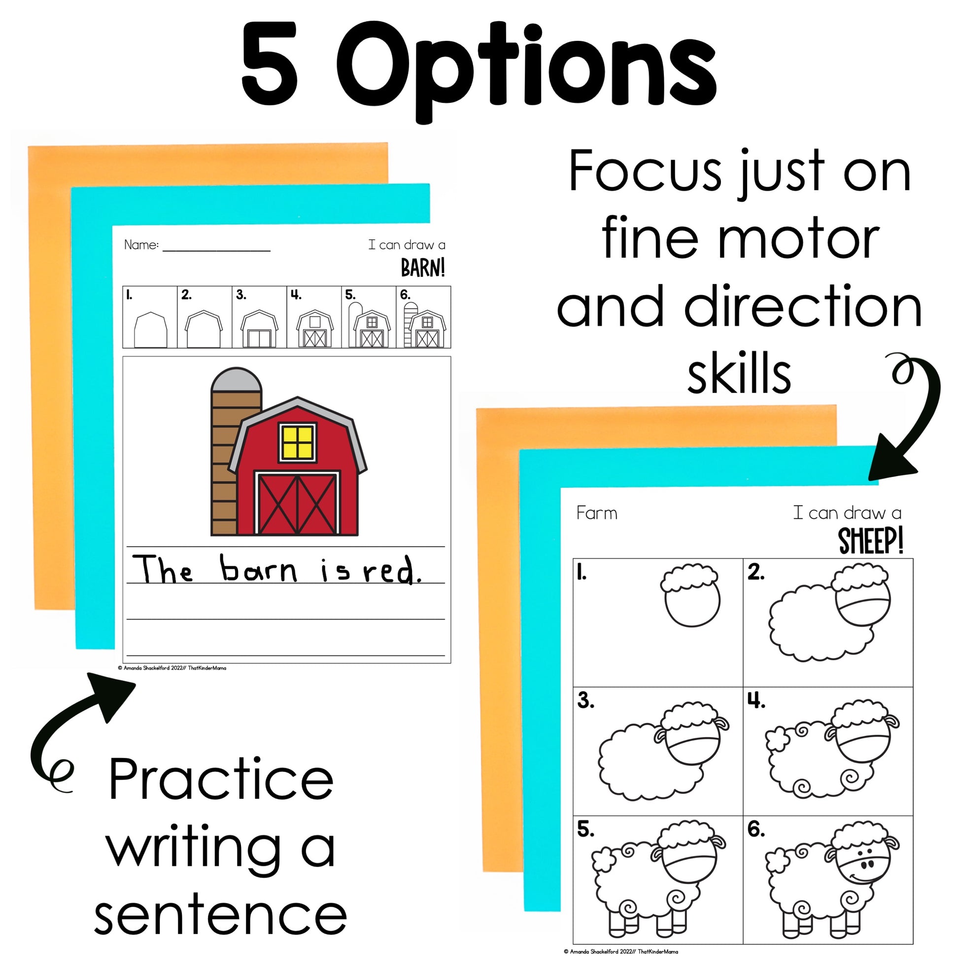 These are Farm Directed Drawings. Perfect for kindergarten, first or second grade students to continue gaining confidence in their drawing abilities while also practicing fine motor skills, following directions, sentence writing or building vocabulary. Add these directed drawings to your reading or craft centers to give your students hand on experiences.