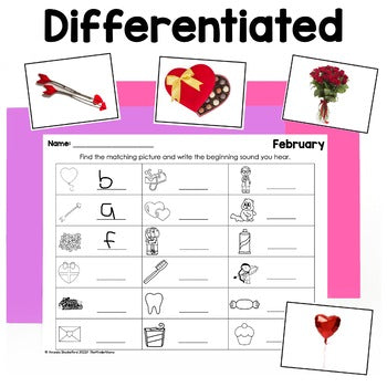 - 4 differentiated worksheets: Write the word, trace the word, write the beginning sound, and write a sentence