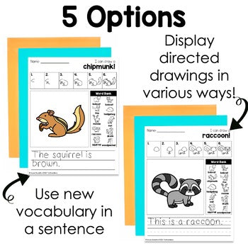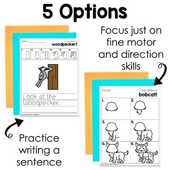 These are Forest Woodland Animals Directed Drawings. Perfect for kindergarten, first or second grade students to continue gaining confidence in their drawing abilities while also practicing fine motor skills, following directions, sentence writing or building vocabulary. Add these directed drawings to your reading or craft centers to give your students hand on experiences.