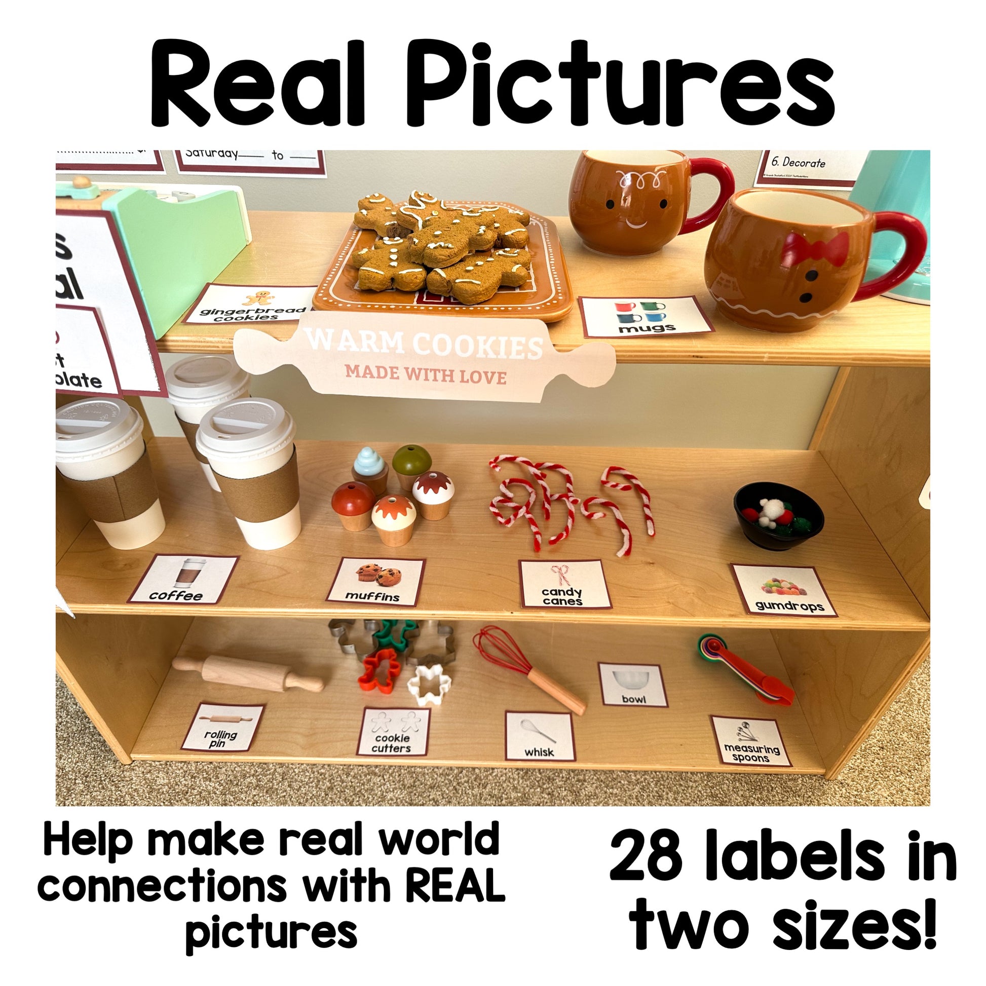 This is an editable Gingerbread Bakery Dramatic Play setup. Expose your students to real pictures and make real world connections through dramatic play. Your students will love pretending to be in a bakery this December.