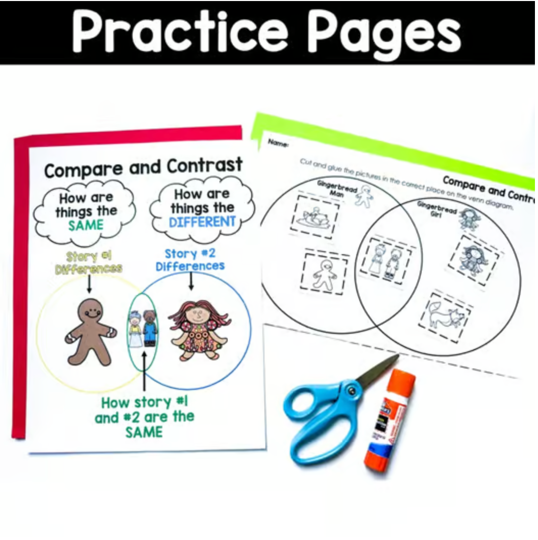 This is a week long Gingerbread Stories Comparison Unit. Students will read the original Gingerbread Man book on the first day and each day will read a new version of a Gingerbread story. During this whole group activity, students will review characters, setting, refrain and the ending.