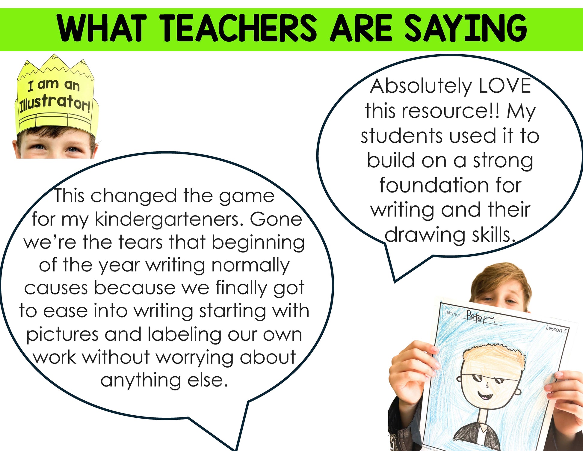 This is a four week illustration unit to help kindergarten/first grade writers become confident in their drawing and coloring skills. Primary students will learn how to draw with shapes and people with different facial expressions, hairstyles, and skin tones.