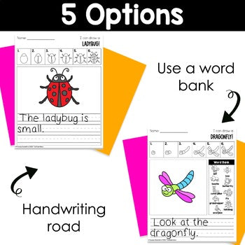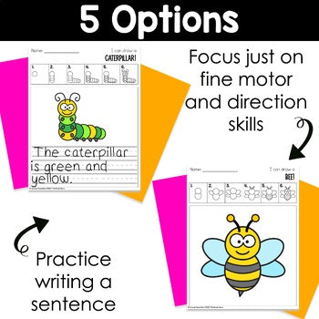 These are 10 Insect Directed Drawings. Perfect for kindergarten students to continue gaining confidence in their drawing abilities while also practicing fine motor skills, following directions, sentence writing or building vocabulary. Add these directed drawings to your reading or craft centers to give your students hand on experiences.
