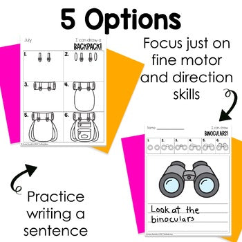 - Option Two: Students draw the directed drawing AND write a sentence (blank and handwriting lines available)