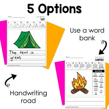These are 10 Camping directed drawings. Perfect for kindergarten students to continue gaining confidence in their drawing abilities while also practicing fine motor skills, following directions, sentence writing or building vocabulary. Add these directed drawings to your reading or craft centers to give your students hand on experiences.