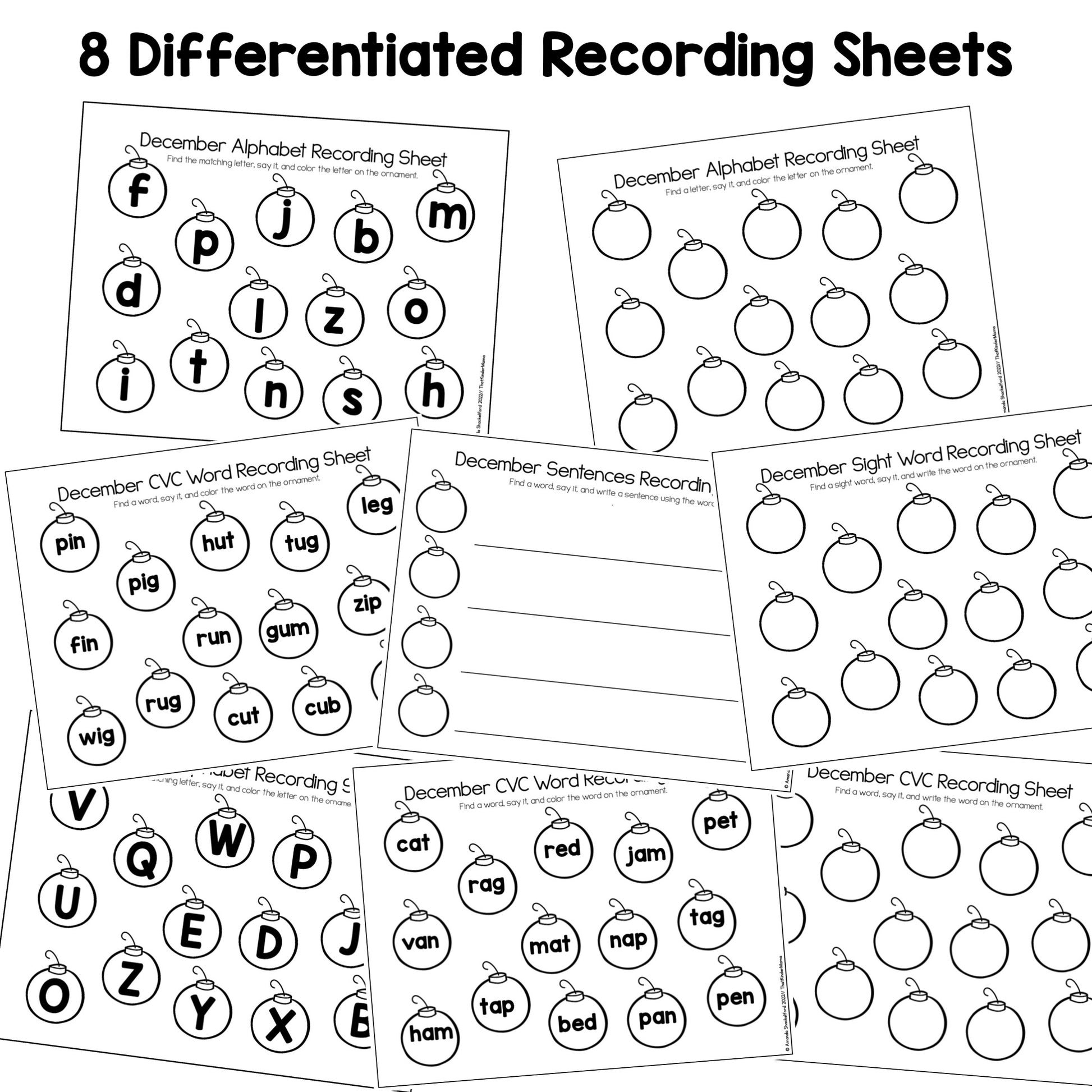 •Place letters/sight words in a tub. Have students pull one card out at a time and record on their sheet. Students may work on this independently or as a literacy center.