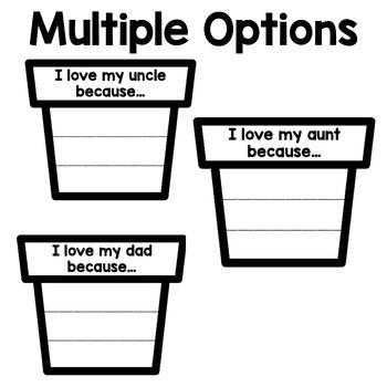 - Craft: Print on templates on specific colored paper. Cut and glue together. Writing option to write why they love their special person