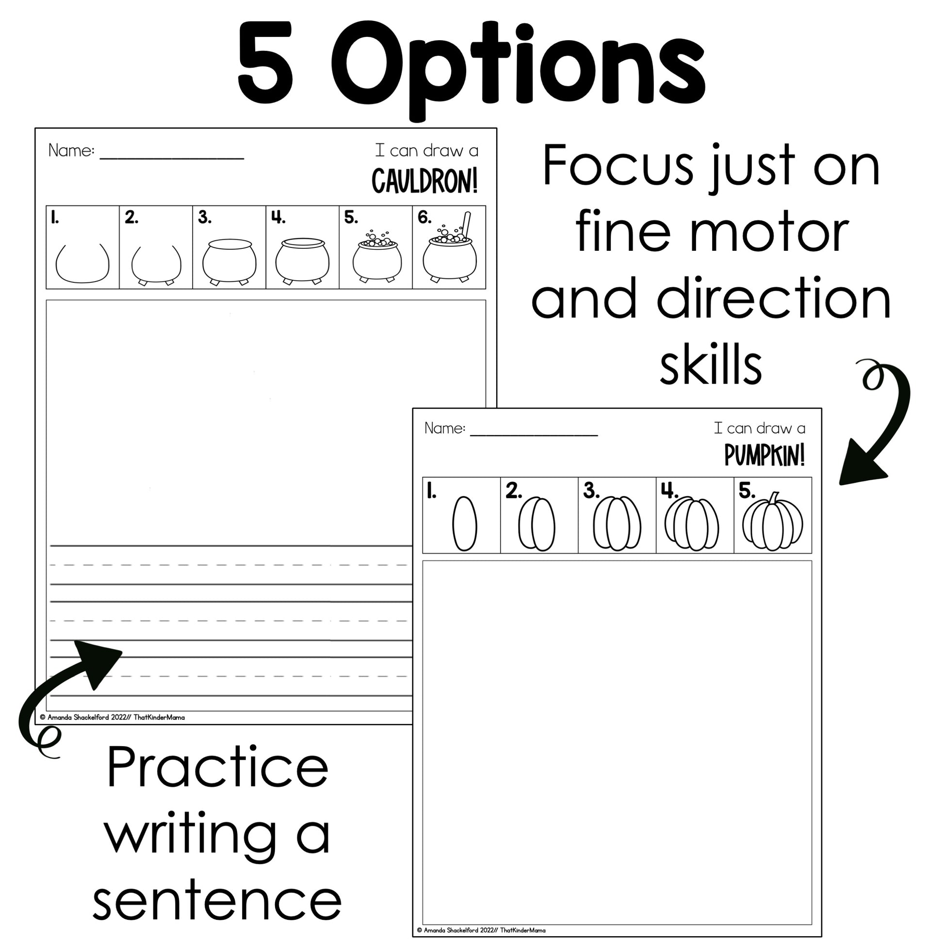 - Option Two: Students draw the directed drawing AND write a sentence (blank and handwriting lines available)