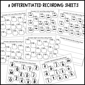 This is a differentiated October/Fall sensory bin reading center. Students can practice alphabet letters, sight words, sentence writing, and CVC words with this differentiated literacy activity.