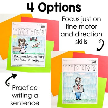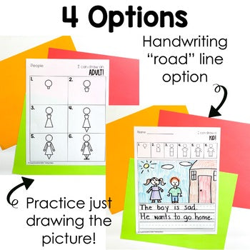 - Option Two: Students draw the directed drawing AND write a sentence (blank and handwriting lines available)