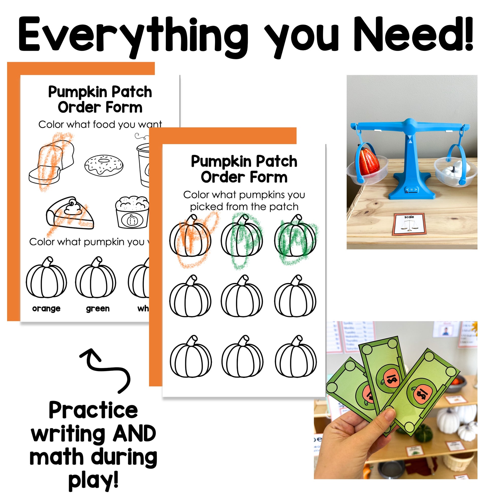 This is a Pumpkin Patch Dramatic Play setup. Expose your students to real pictures and make real world connections through this dramatic play at a pumpkin patch and pumpkin store. Your students will love pretending to pick pumpkins and purchase fall treats from the store.