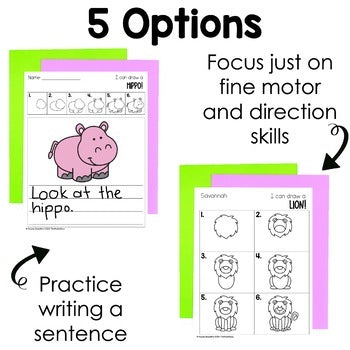 These are Savannah Animals Directed Drawings. Perfect for kindergarten, first or second grade students to continue gaining confidence in their drawing abilities while also practicing fine motor skills, following directions, sentence writing or building vocabulary. Add these directed drawings to your reading or craft centers to give your students hand on experiences.