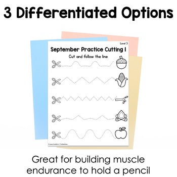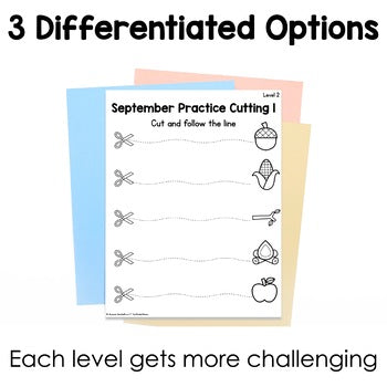 These are September Cutting Practice Pages. Perfect for kindergarten students to have fun while practicing scissor and fine motor skills. Add these cutting pages to your morning tubs, fine motor bins or early finishers activities. Your students will enjoy this hands on learning experience!